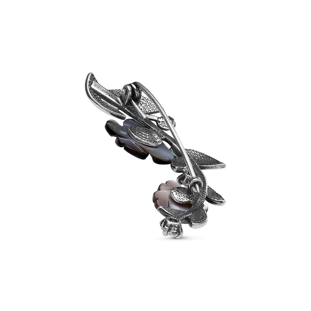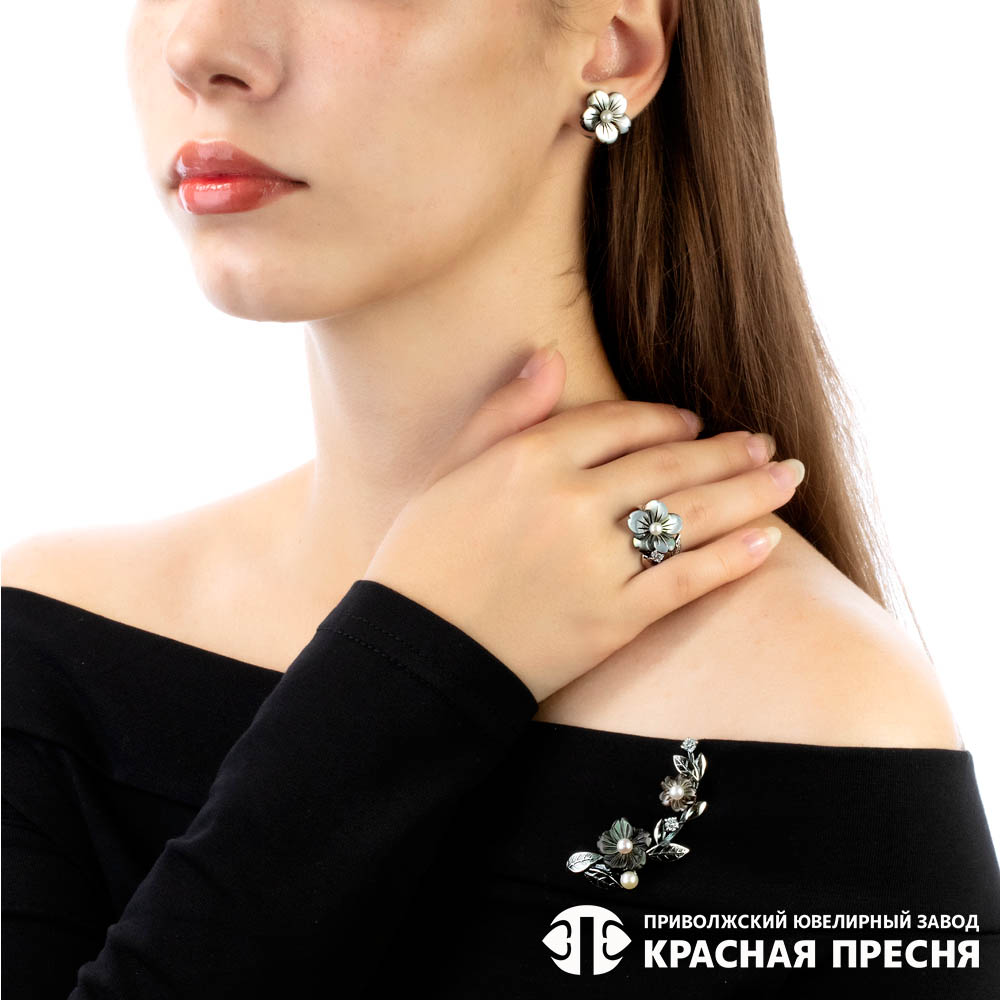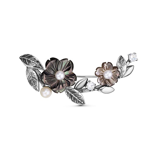 Перламутр Цветок d15.0мм 1шт; Культивир. жемчуг Круг 2шт; Перламутр Цветок d10.0мм 1шт; Фианит (недраг. камень) Круг 3.5мм 2шт; Культивир. жемчуг Круг 4.0-4.5мм 1шт