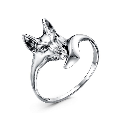 Кольцо из серебра 925 пробы с оксидированием, на котором изображена "Лисица"