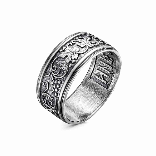 Слова «Спаси и сохрани» обладают сильной православной энергетикой. На внешей стороне кольца расположен красивый рисунок в виде виноградной лозы, на внутренней стороне красуется надпись Спаси и Сохрани.