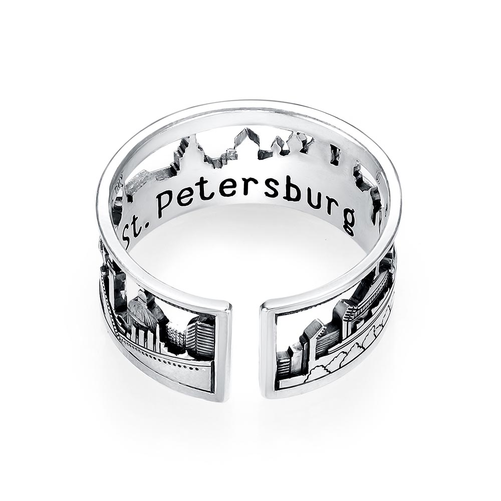 Кольцо "Санкт-Петербург" - это наше признание в любви к красивейшему городу России. Кольцо словно путеводитель по достопримечательностям: Петропавловская крепость, Адмиралтейство, Александровская колонна, Мариинский театр, Исаакиевский собор, храм Спаса на крови, Аврора, разводные мосты, Казанский собор, Медный всадник, Петровский стадион.