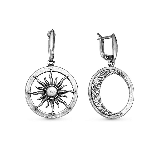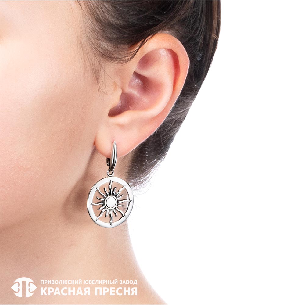 На одной серьге изображено "Солнце", которое считается символом мужского начала - одна из самых сильнейших энергий. Олицетворяет активность, движение, жизнь, совершенствование. Солнечная энергия придает силу, направляет в сторону реализации идей и достижения целей. Так же принято считать символом нескончаемой жизни, чистой и светлой души с положительной энергетикой.