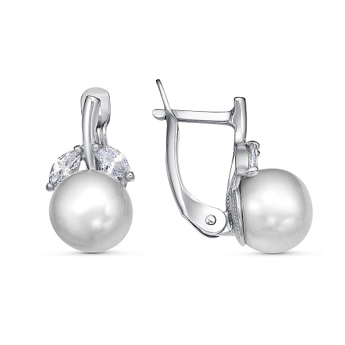 Культивир. жемчуг Круг 9,0мм 2шт; Фианит (недраг. камень) Челнок 5х2,5х2мм 4шт