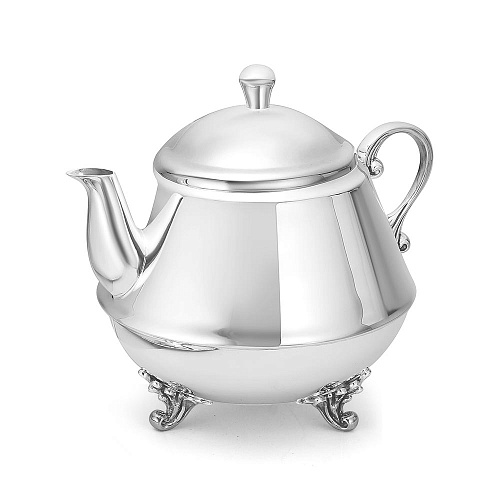 Идеально гладкий чайник выполнен из серебра 925°. Он имеет простой лаконичный дизайн с красивыми ножками растительного узора. Прекрасный чайник из коллекции «Византия» изготовлен для душевного чаепития.