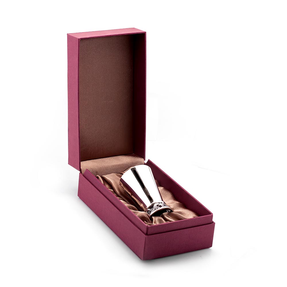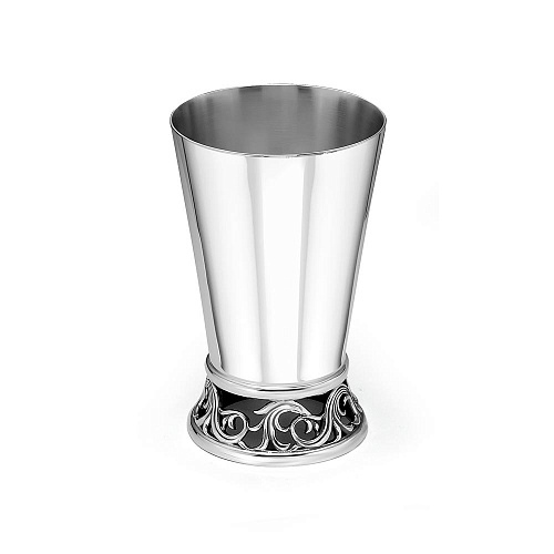 Идеально гладкая стопка с отполированной поверхностью выполнена из серебра 925°. В нижней части стопки красуется красивый, изящный узор. Стопка может стать прекрасным сувениром к любому торжеству.