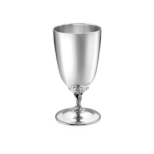 Идеально гладкая рюмка с отполированной поверхностью классической формы из серебра 925°. Изящная ножка выполнена в виде виноградной лозы
