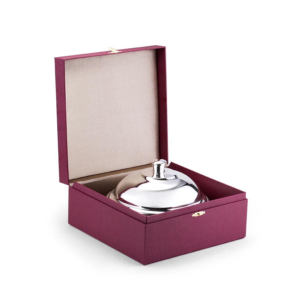 Идеально гладкая масленка выполнена из серебра 925°. Она имеет простой лаконичный дизайн.