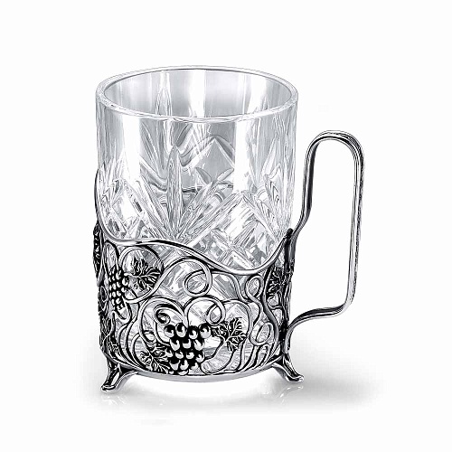 Подстаканник выполнен из серебра 925° с красивым узором из виноградной лозы. Он привнесет в дом неповторимый колорит и добавит нотку изысканности церемонии чаепития.Подстаканник продается в фирменном футляре. Объём стакана: 250 мл.