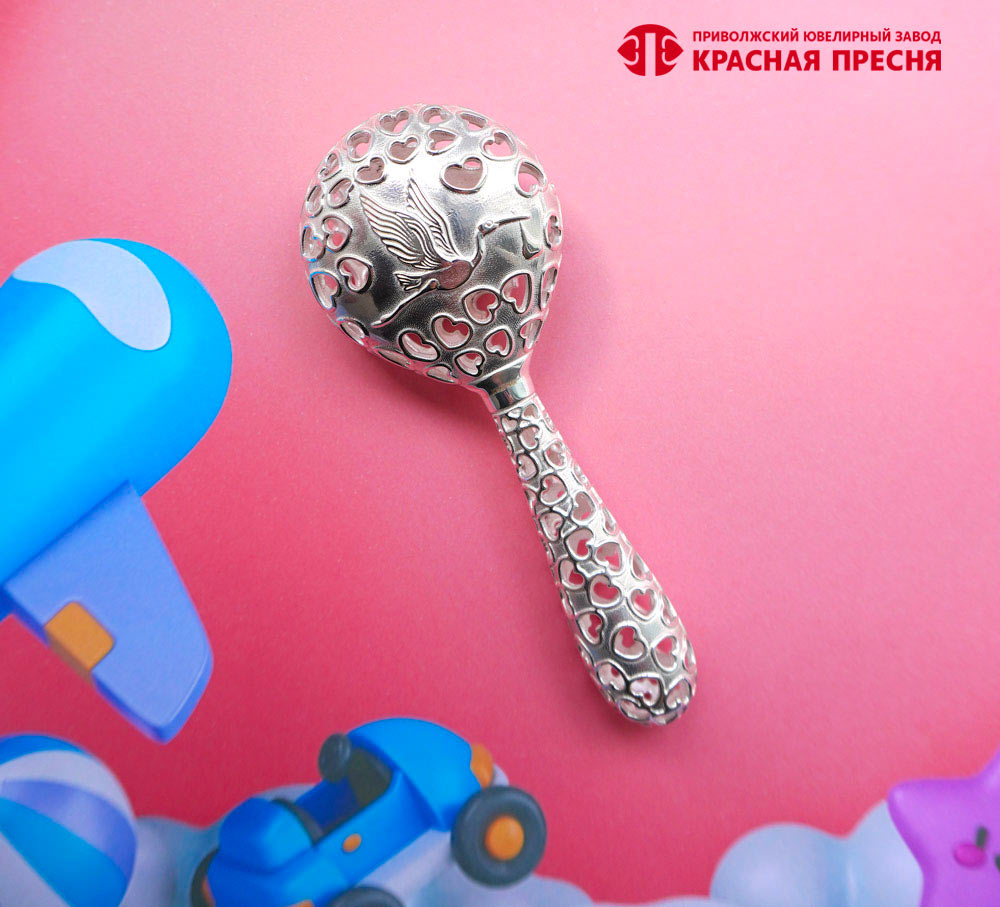 Что может быть более волнующим и долгожданным, чем появление на свет новой жизни! А что необходимо малышу, когда он немножечко подрастет? Верно - игрушка-подружка. Представляем вашему вниманию погремушку, выполненную из серебра 925 пробы. Плавные линии, отсутствие острых граней, небольшой размер и вес, а также противовирусные и бактерицидные свойства серебра делают такую погремушку неотъемлемой частью жизни малыша. Эта милая вещица семье очень пригодится. Звонко песенки поет - деткам плакать не дает. Серебряная погремушка - лучшая малышовая подружка!