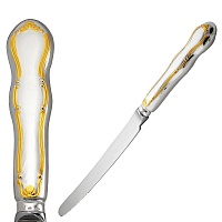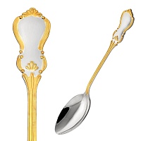 Аккуратная и удобная ложка выполнена из серебра 925°. Изысканный дизайн, с красивым позолоченным узором на черенке, идеально подойдет для второго блюда.