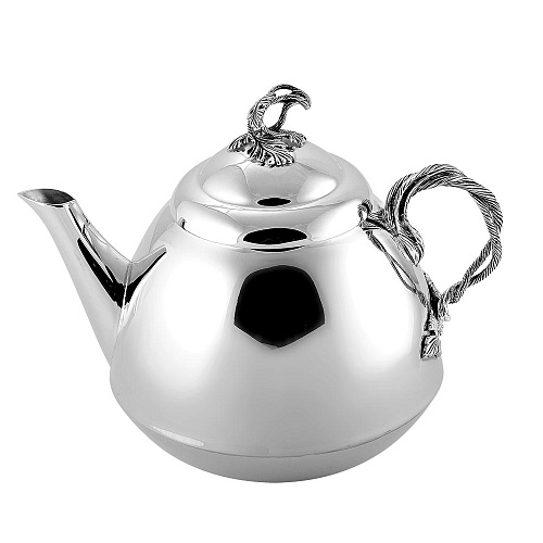 Идеально гладкий чайник выполнен из серебра 925°. Он имеет простой лаконичный дизайн, с красивой ручкой выполненной в виде виноградной лозы. Поверхность его отполирована вручную, что придает изделию невероятный блеск. Чайник идеально дополнит сервировку вашего стола при семейном чаепитии.