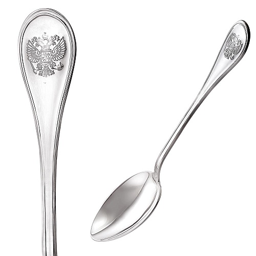 Аккуратная и удобная ложка выполнена из серебра 925°. На черенке ложки расположен двуглавый орел, который символизирует единство и суверенитет России.