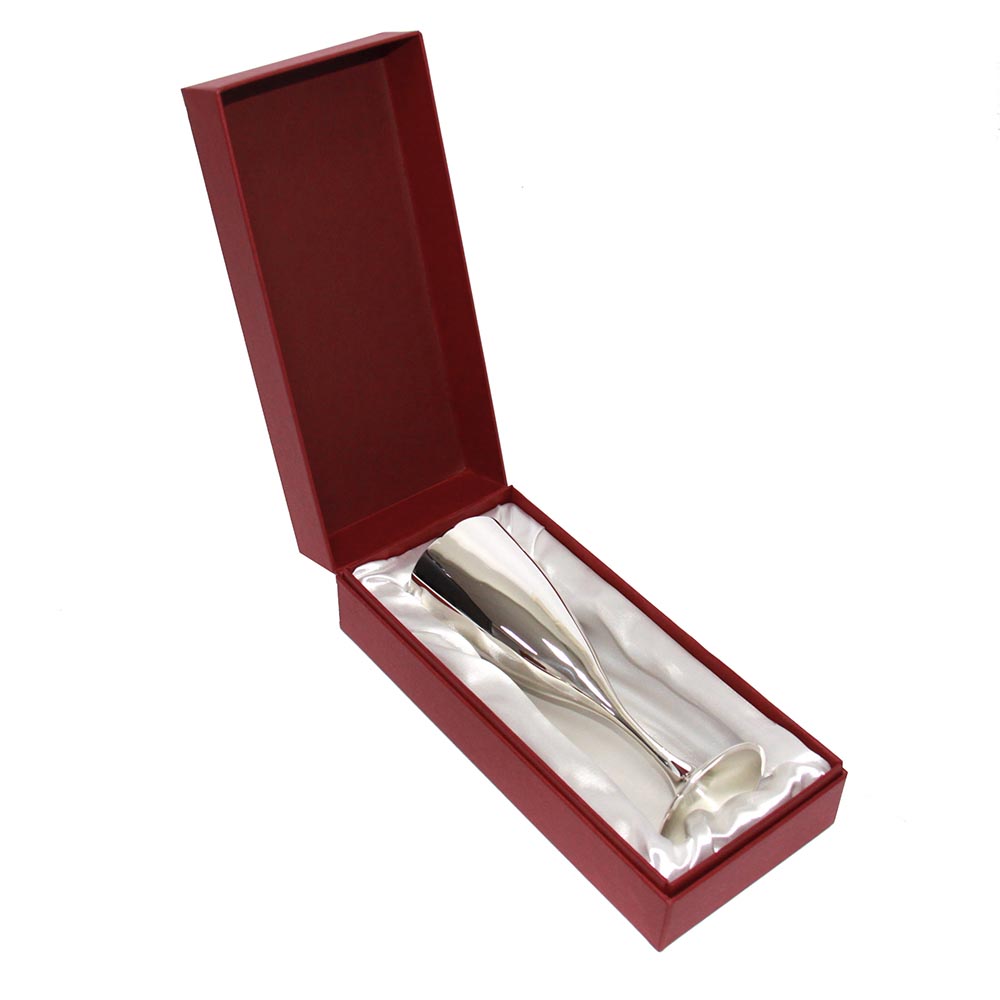 Идеально гладкий фужер с отполированной поверхностью выполнен в классической форме из серебра высочайшей пробы. Он может стать прекрасным сувениром к любому торжеству.