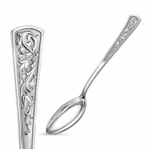Аккуратная и удобная ложка выполнена из серебра 925°. Изысканный дизайн, с красивым узором на черенке, идеально подойдет для первых и вторых блюд.