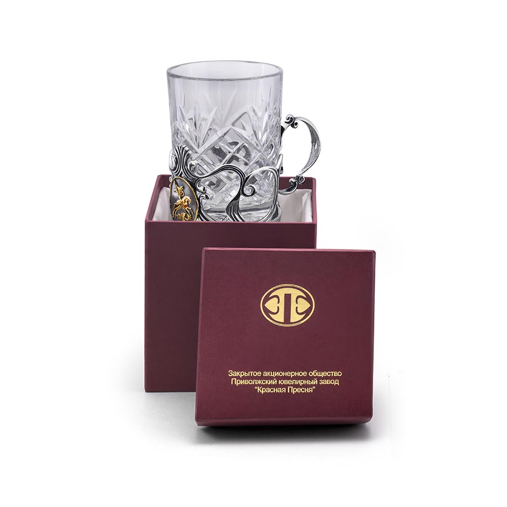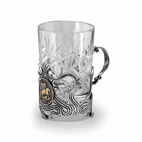 Стоит обратить внимание на очень красивый и изысканный дизайн. На подстаканнике расположено символичное позолоченное изображение «Георгия Победоносца».