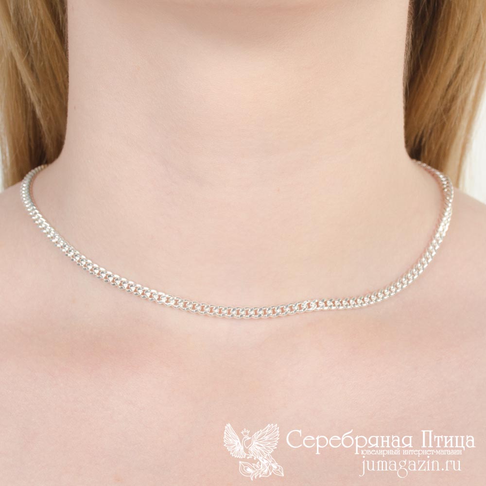 Цепь из серебра 925 пробы с панцирным гранёным плетением.